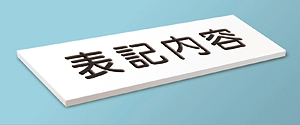 【表彫刻仕様】 表示面側から直接彫りこんだ仕様です。(触れると凹凸が判ります) 壁面などへの貼り付け用途のほか、表記の反対側の面(裏側)に影響しないため裏表両面にそれぞれ表記することも可能で吊り下げ札などにも適します。 |