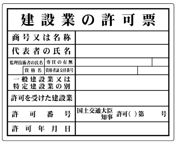 現場用法令表示板 「建設業の許可票 (現場掲示用)」:Z13