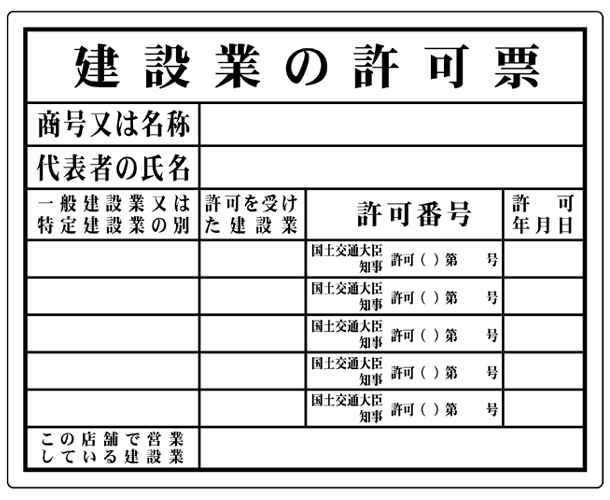 法令表示板 「建設業の許可票 (事業所掲示用)」:Z13B